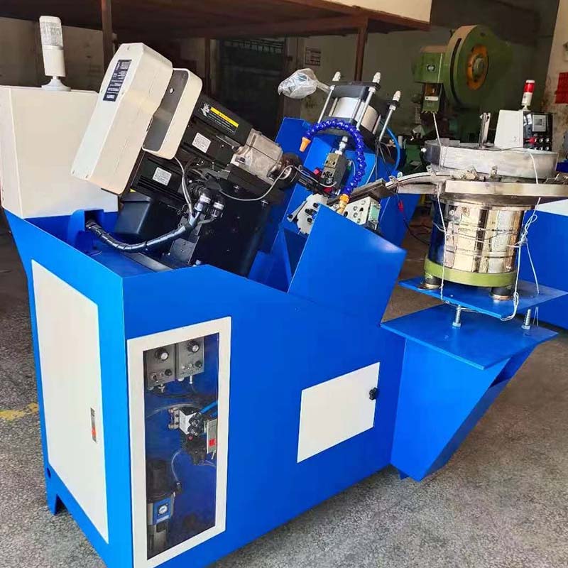 ขั้นตอนการทำงานของเครื่องต๊าปเกลียว 25 มม. ค่อนข้างคงที่ ใส่น็อตเปล่าขนาด 25 มม. ลงในฮอปเปอร์ และเครื่องจะป้อนน็อตไปยังตำแหน่งกรีดโดยอัตโนมัติ จากนั้นก๊อกจะหมุนและเจาะเข้าไปในรูของช่องว่างเพื่อสร้างเกลียวที่สอดคล้องกัน