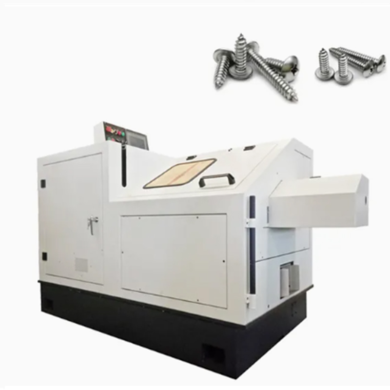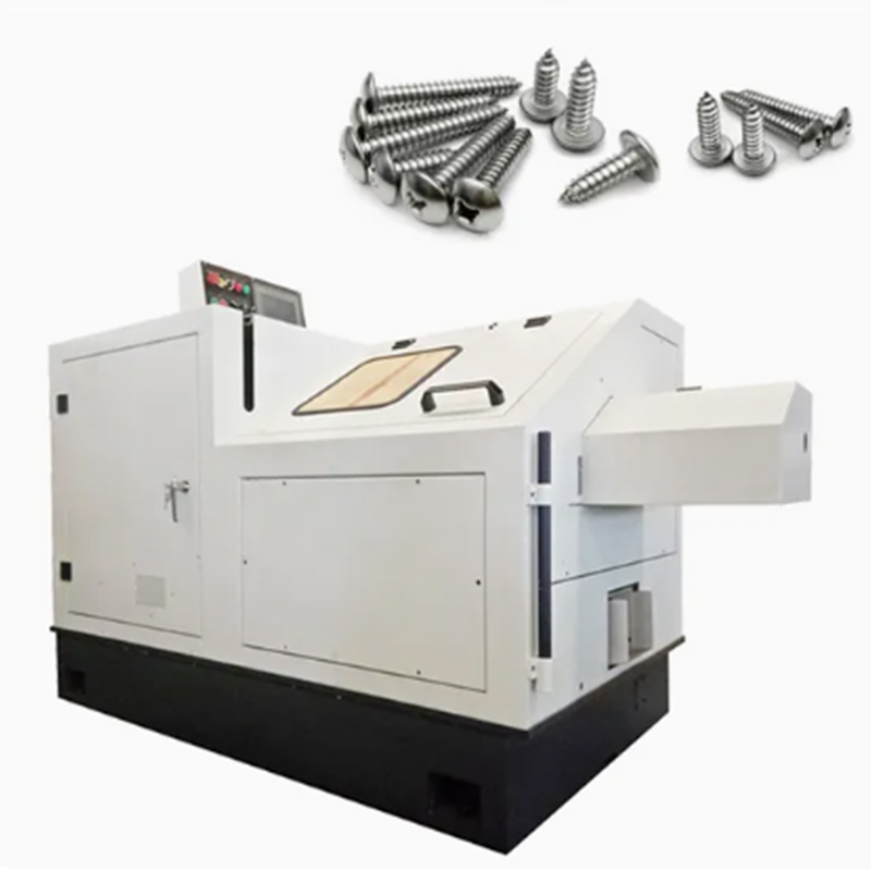 เครื่องทำสกรูไม้อัตโนมัติได้รับการออกแบบมาโดยเฉพาะสำหรับการผลิตสกรูไม้ ใส่ลวดลงในเครื่องตัดไปที่ความยาวที่ต้องการจากนั้นกดหัวสกรูแล้วรูปร่างด้ายหนาที่เหมาะสมสำหรับไม้และในที่สุดก็สร้างปลายแหลม
