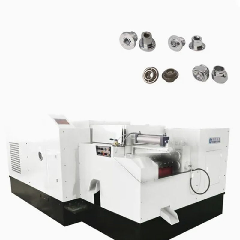 เครื่องสามารถผลิตถั่วได้อย่างรวดเร็ว ก่อนอื่นให้ตัดลวดโลหะชิ้นหนึ่งจับแล้วย้ายไปยังเวิร์กสเตชันหลาย ๆ อัน ในแต่ละเวิร์กสเตชันหมัดที่ทรงพลังและตายค้อนหรือกดช่องว่างให้เป็นรูปร่าง ก่อนอื่นให้แบนศีรษะจากนั้นสร้างปลายหรือเปลี่ยนมุมและในที่สุดก็กลายเป็นรูปร่างพื้นฐานของน็อตพร้อมสำหรับการประมวลผลเธรด นี่เป็นกระบวนการที่มีเสียงดัง แต่เป็นจังหวะ